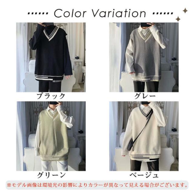 ベスト ニットベスト Vネック セーター ベストセーター カップル レディース メンズ 男女兼用 防寒 秋冬 保温 シンプル 上品 重ね着 リブ