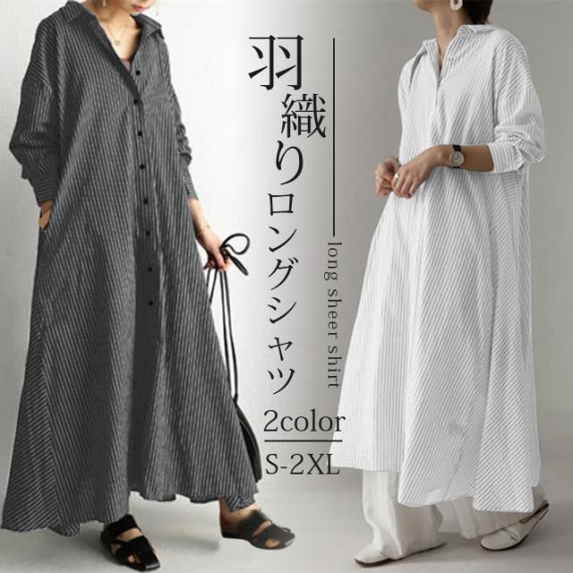 シャツ ロングシャツ ワンピース ボーダー レディース ゆるトップス 長袖 カジュアル 春秋 着痩せ おしゃれ ゆったり 体型カバー 無地 シンプル