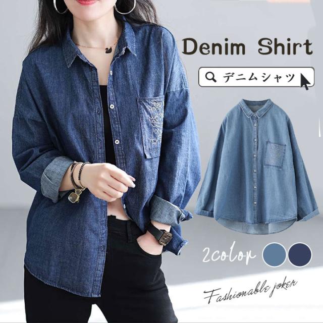デニムシャツ レディース 長袖 大きいサイズ 無地 ウエスタンシャツ ウォッシュ加工 羽織り シャツ デニム カジュアル レイヤード 送料無料