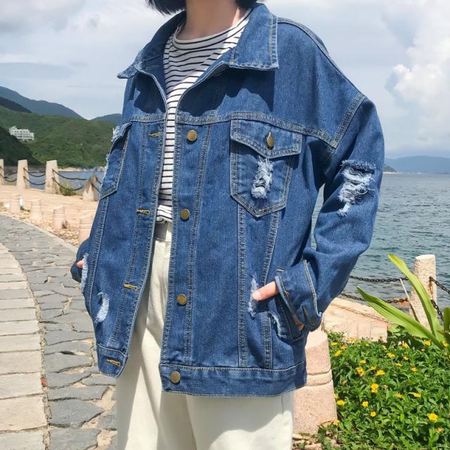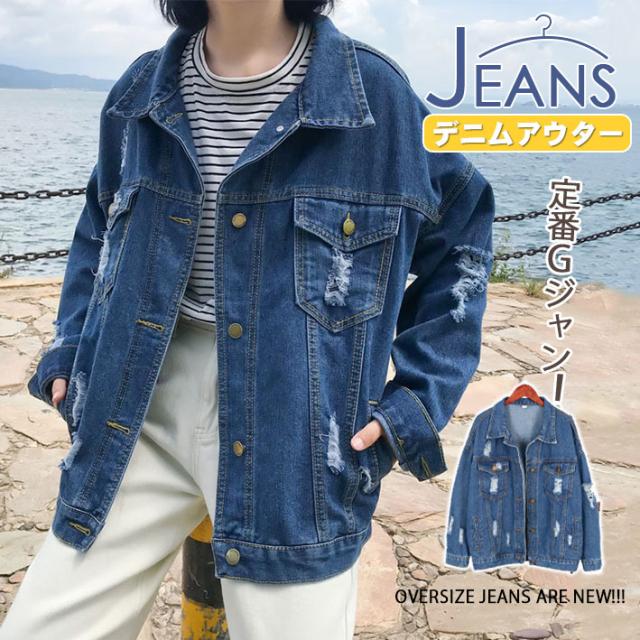 デニムジャケット レディース アウター ダメージ Gジャン カジュアル 学生 ジージャン ビッグシルエット 大きいサイズ オーバーサイズ ゆったり