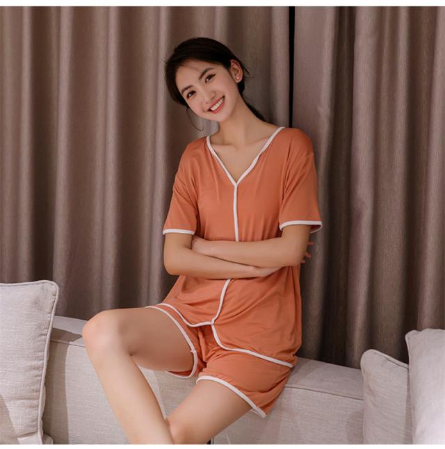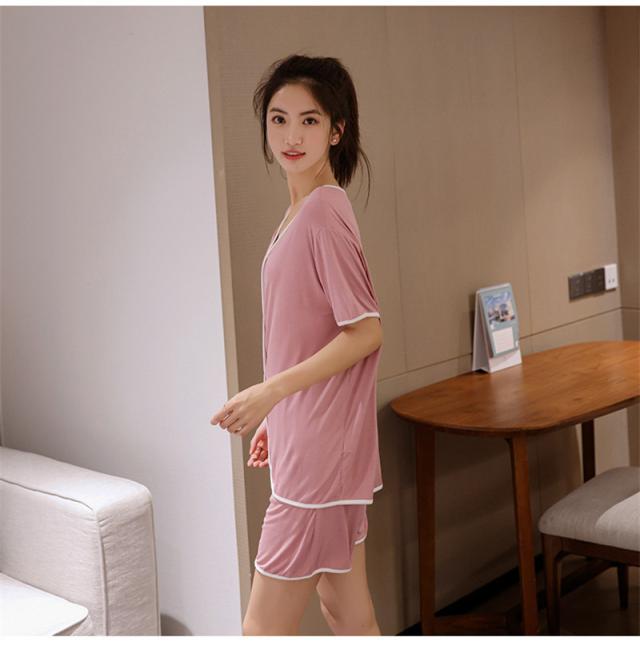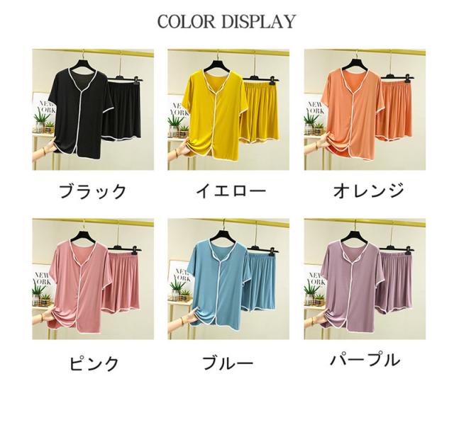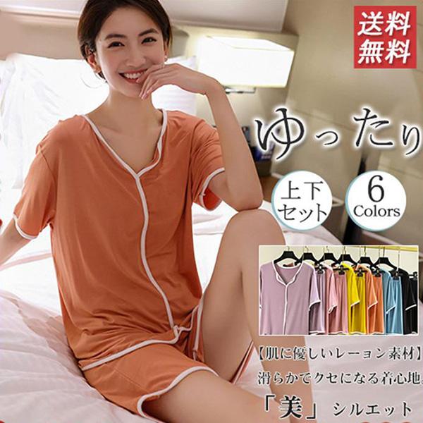 ルームウェア パジャマ レディース Vネック 上下セット 部屋着 寝巻き トップス リラックス 半袖 おしゃれ かわいい カジュアル シンプル
