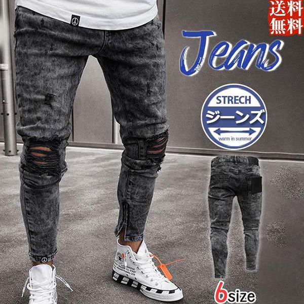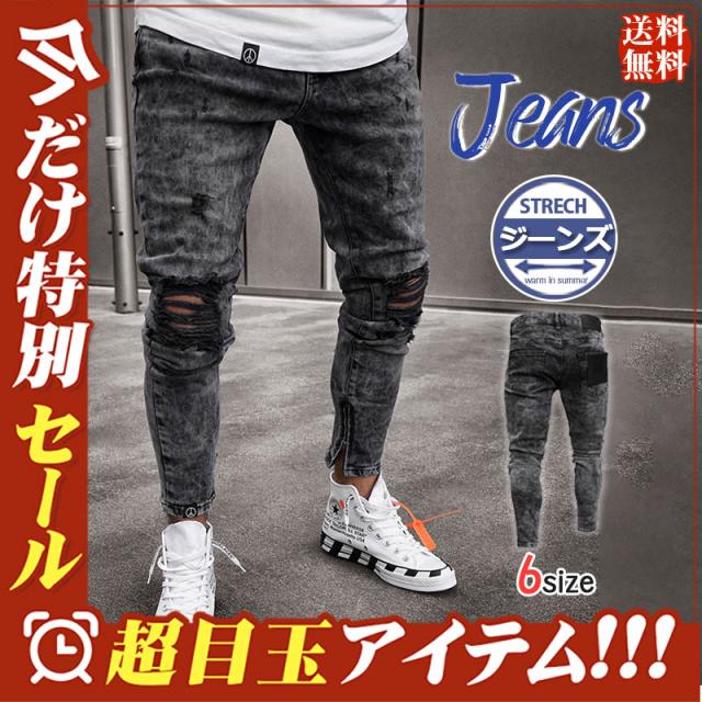 ジーンズ メンズ デニムパンツ スキニー ジーパン カッコイイ ズボン お兄系 ダメージ 大きいサイズ スリム カジュアル 薄手 大きいサイズ