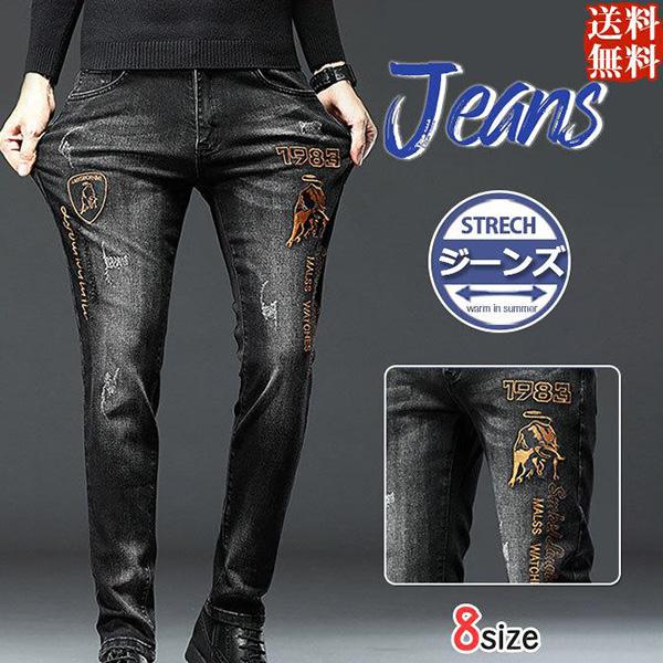 ジーンズ メンズ デニムパンツ 刺繍 印字スキニー ジーパン ズボン 通勤 大きいサイズ スリム カジュアル 薄手 大きいサイズ おしゃれ