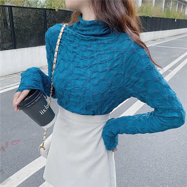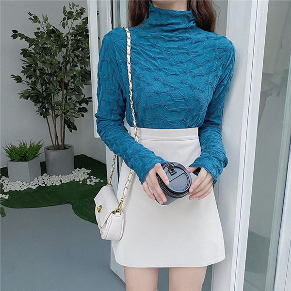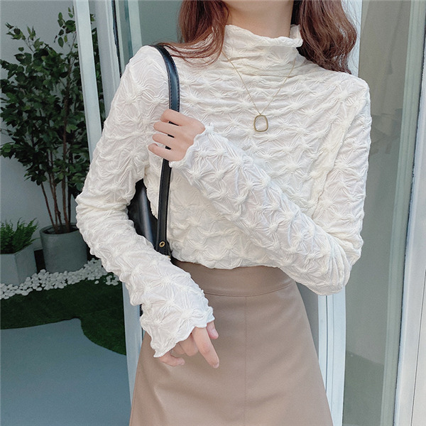 柔らかなチュール素材を使用し、首元はハイネックでUV対策としても露出度調整にも◎