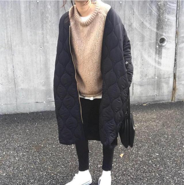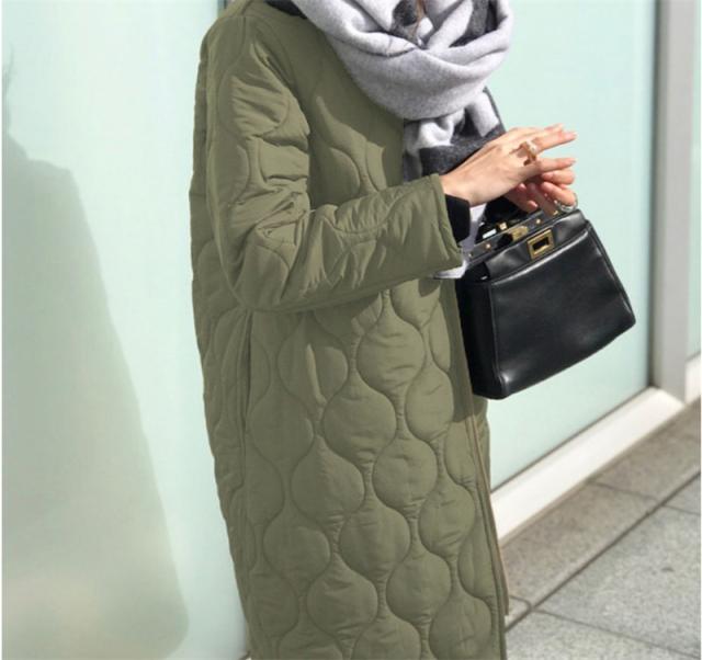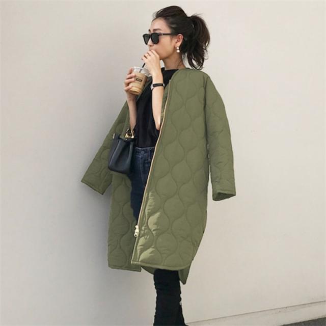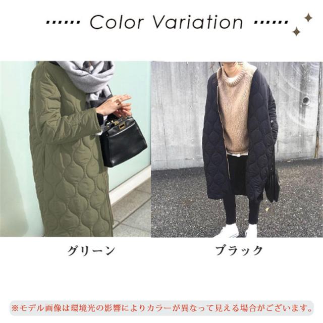 キルティングコート レディース 中綿コート 襟なし ロング丈 キルティング 無地 軽量 大きいサイズ 暖かい アウター あったか ゆったり 秋冬