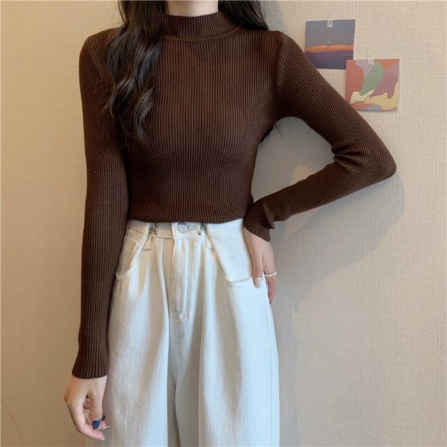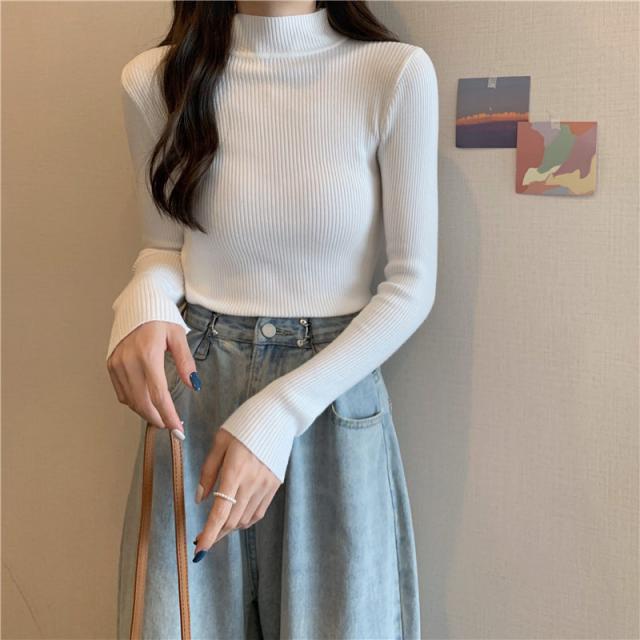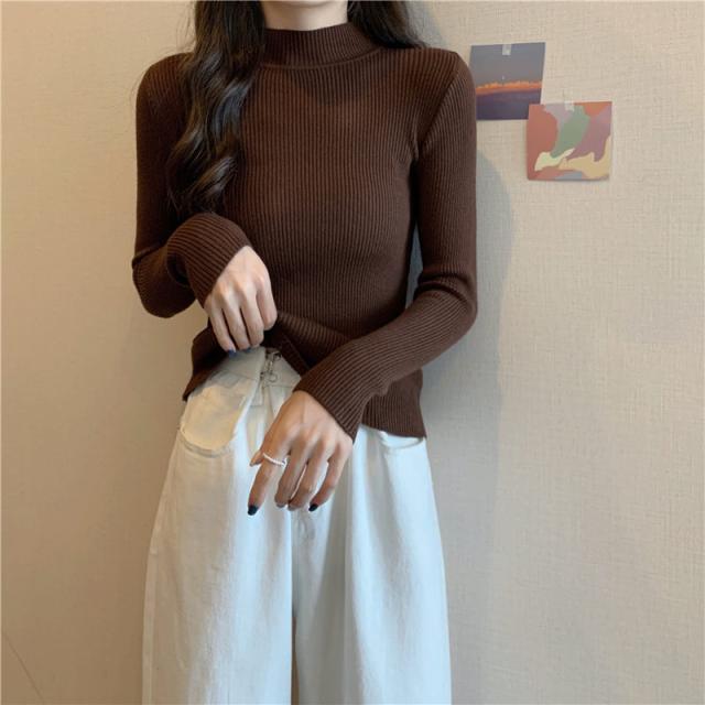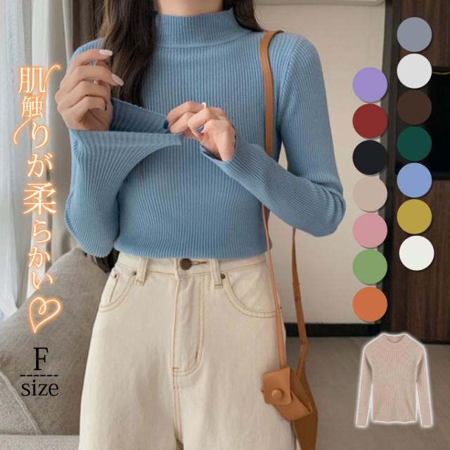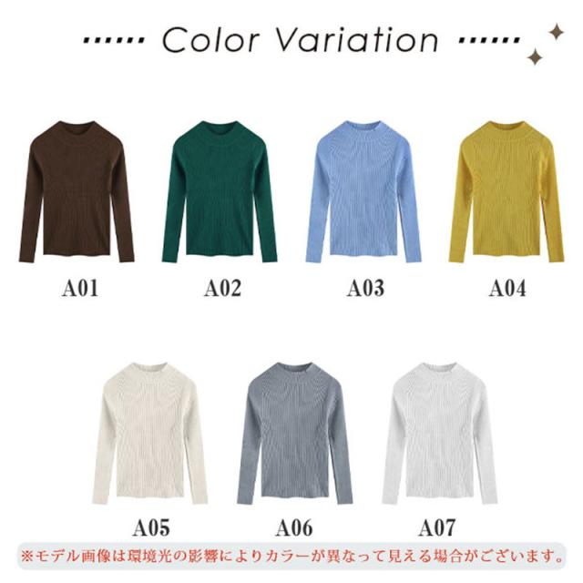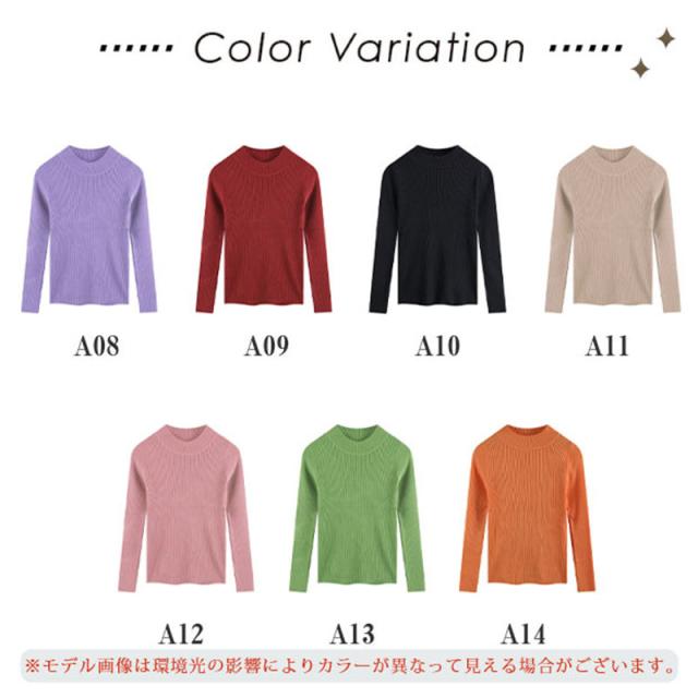 ニット セーター レディース トップス ニットソー カラー 長袖 伸縮性 暖か スリム 着痩せ おしゃれ 秋 冬 無地 秋コーデ カジュアル 送料無料