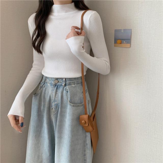 綺麗めな印象を与える大人ハイネックニットセーター。