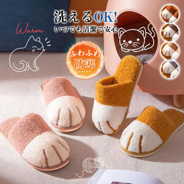 送料無料 スリッパ レディース メンズ 猫柄 暖かい ふわふわ かわいい ルームスリッパ ルームシューズ 防寒 オフィス 来客用 男女兼用 冬用