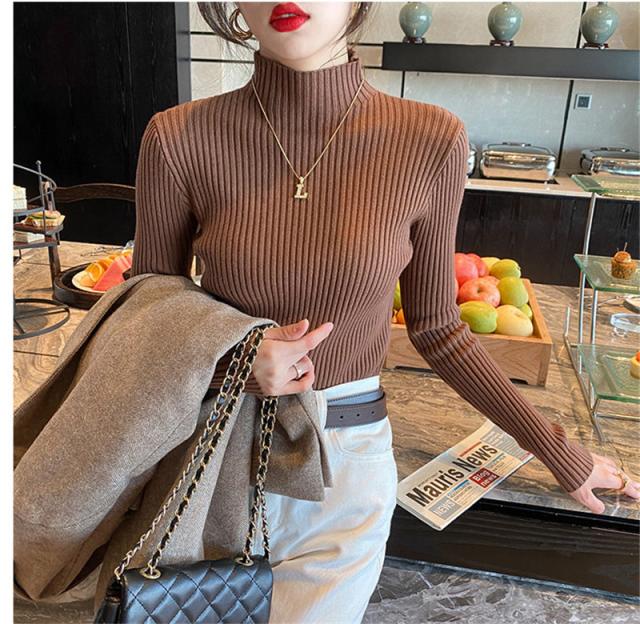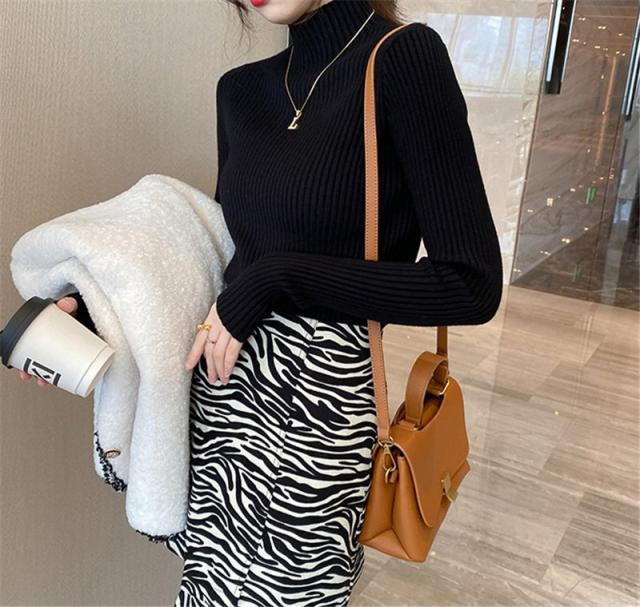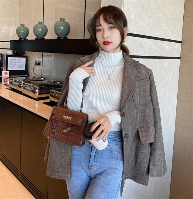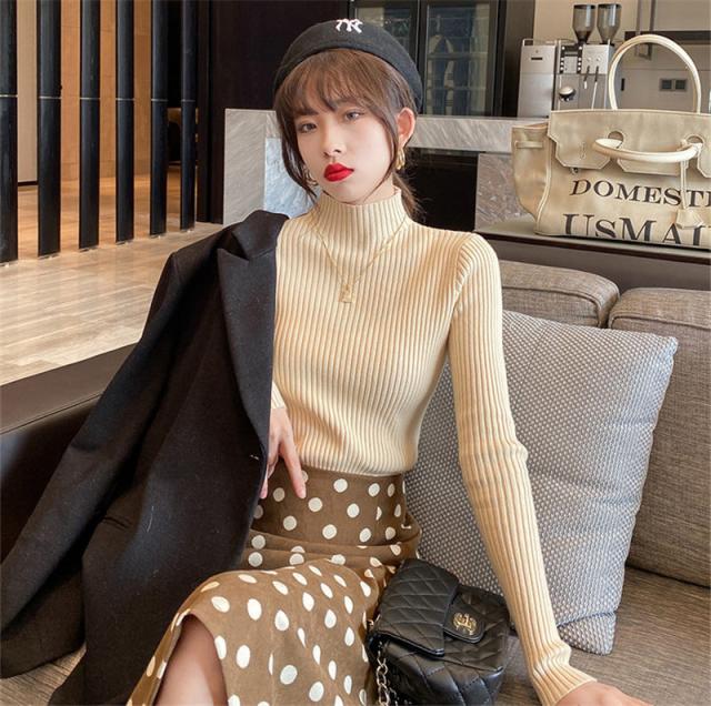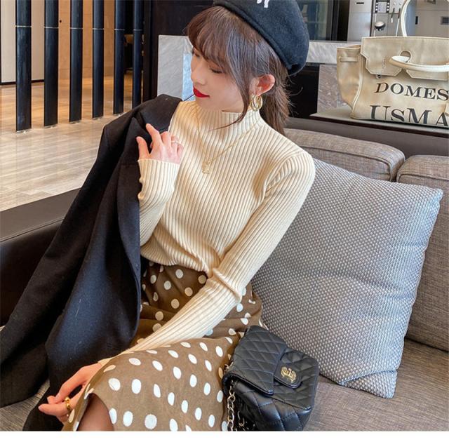 綺麗めな印象を与える大人ハイネックニットセーター。