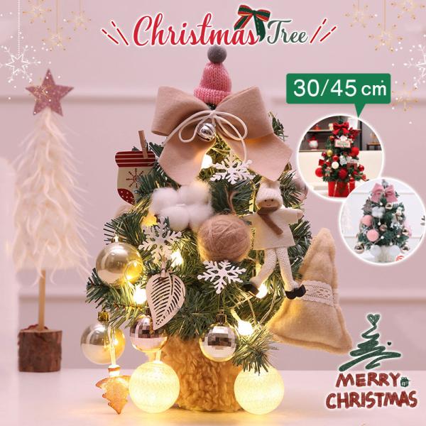 クリスマスツリー 卓上 45cm ミニツリー クリスマス 電飾 ledライト キラキラ 電池式 かわいい コンパクト インテリア オブジェ プレゼント