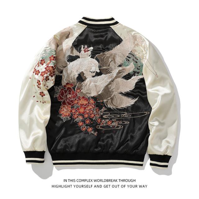 スカジャン メンズ ジャンパー ジャケット 和柄 刺繍 ミリタリー 九尾の狐 バイク カジュアル おしゃれ アウター 横須賀風 秋 冬物 送料無料