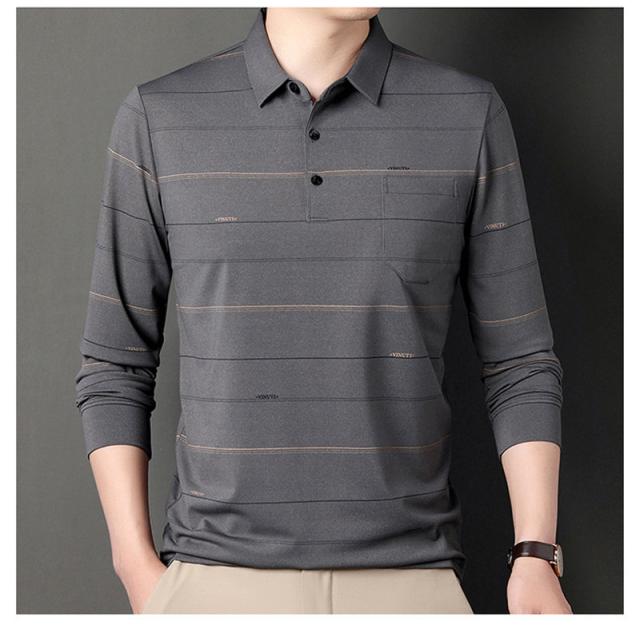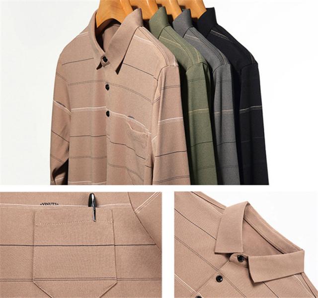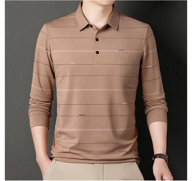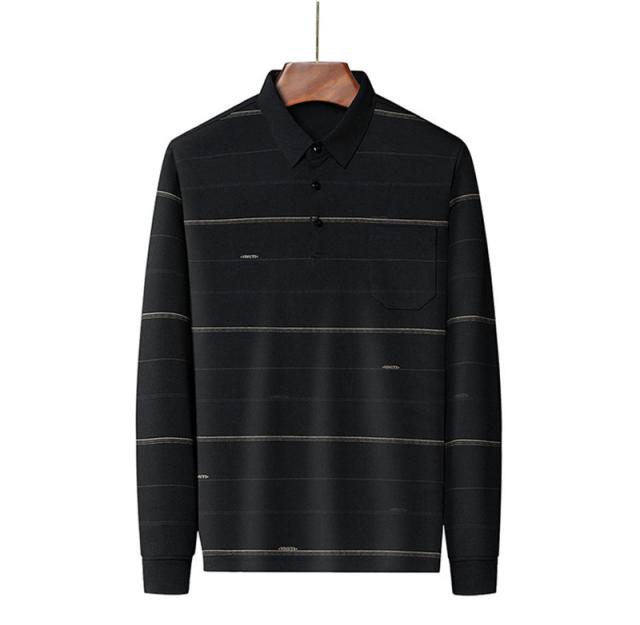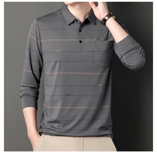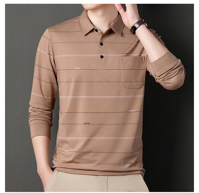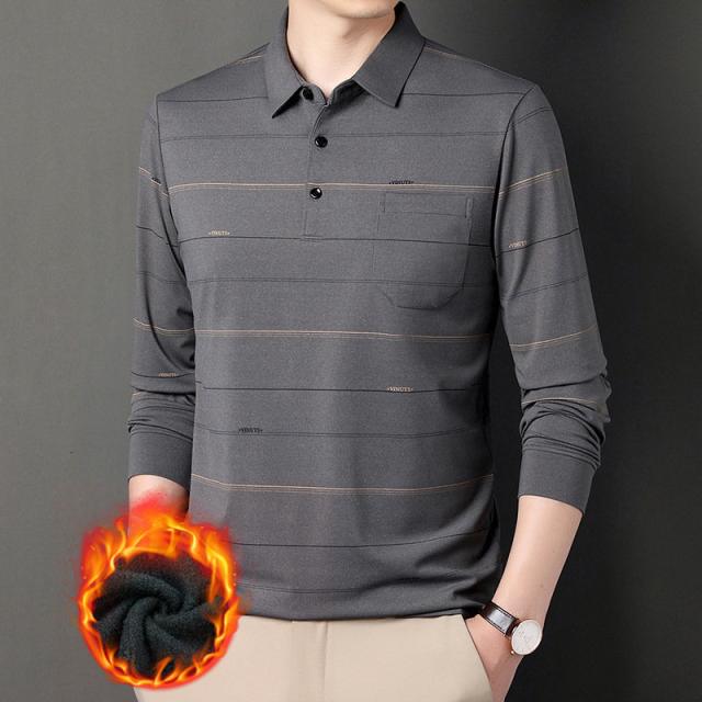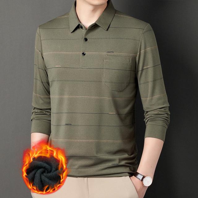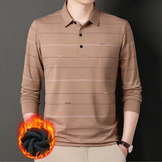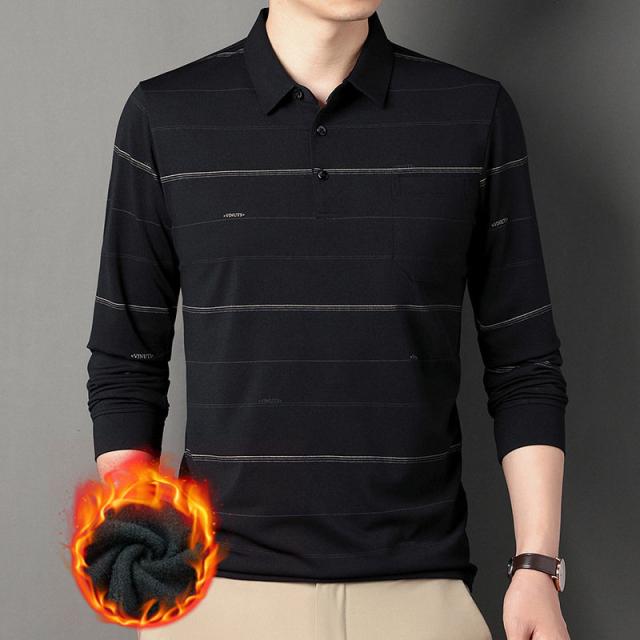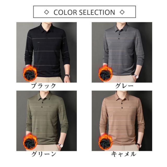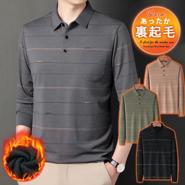 ポロシャツ メンズ 長袖 ゴルフウェア ストライプ 裏ボア 裏起毛 折り襟 Tシャツ トップス ビジネス おしゃれ 通勤 スポーツ カジュアル 秋冬