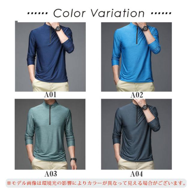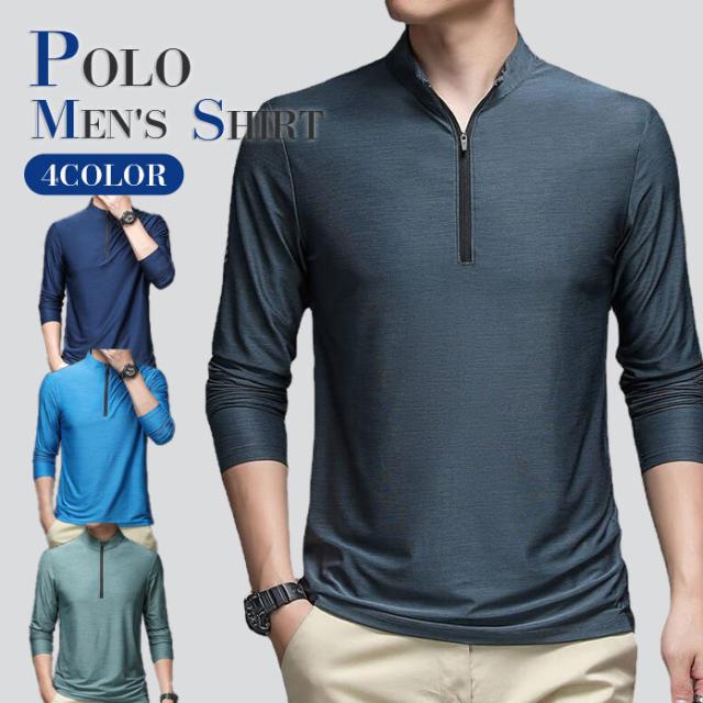 ポロシャツ メンズ トップス 長袖 ファスナー Poloシャツ ゴルフウェア ポロ カットソー スポーツ ビジネス 紳士服 敬老の日 送料無料