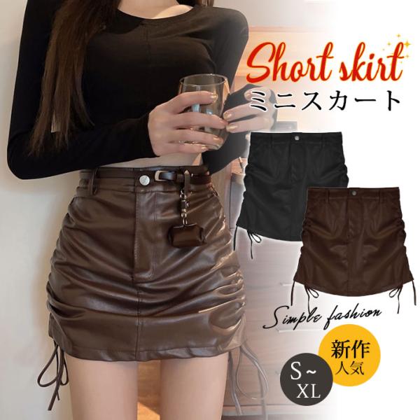 ミニスカート レザースカート PUスカート 無地 ハイウエスト タイトスカート ショート丈 レディース 美脚 脚長 シンプル 送料無料 送料無料