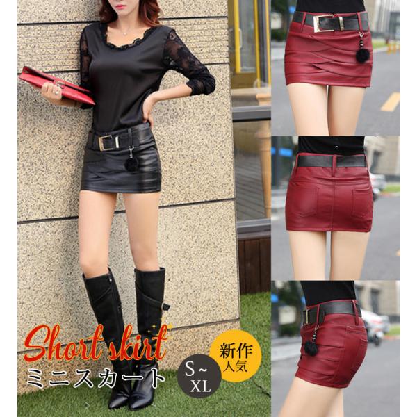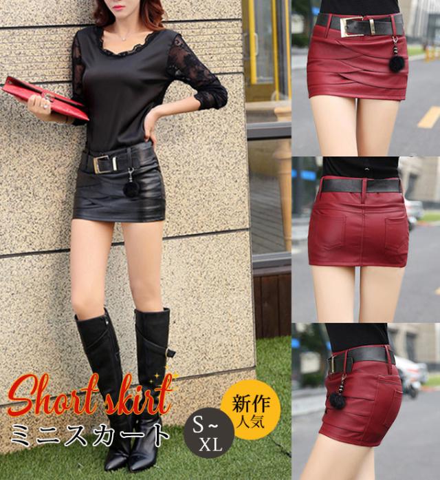 人気 ミニスカート レザースカート PUスカート 無地 ハイウエスト タイトスカート ショート丈 レディース 美脚 脚長 シンプル 新作 送料無料