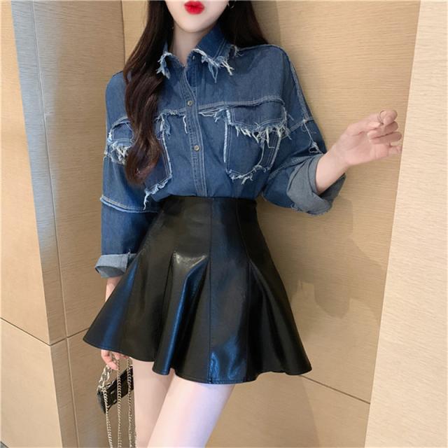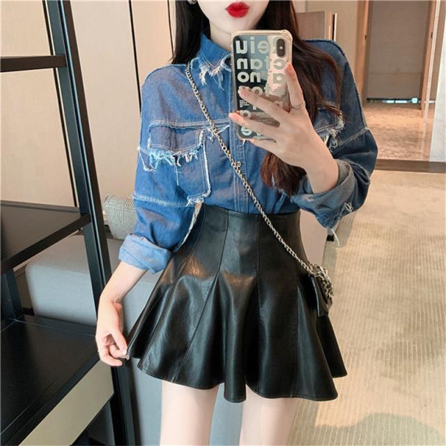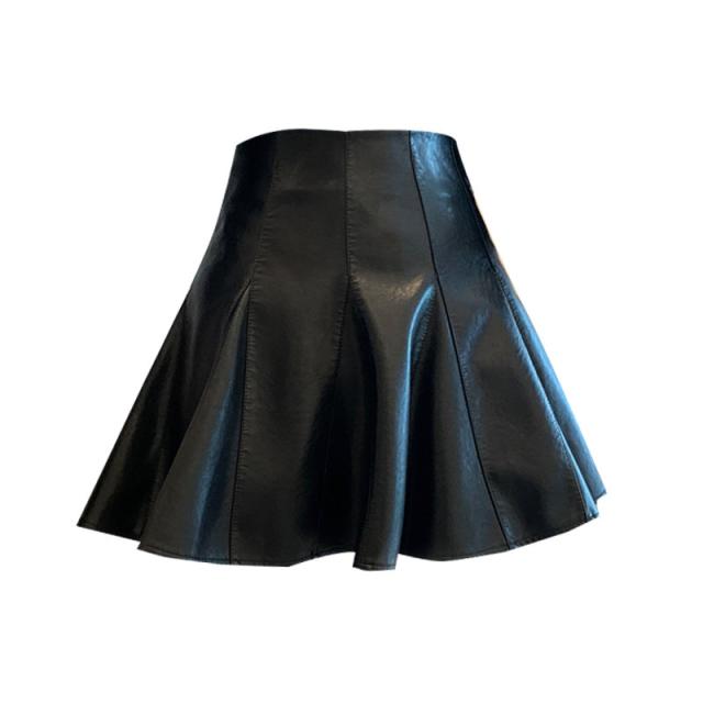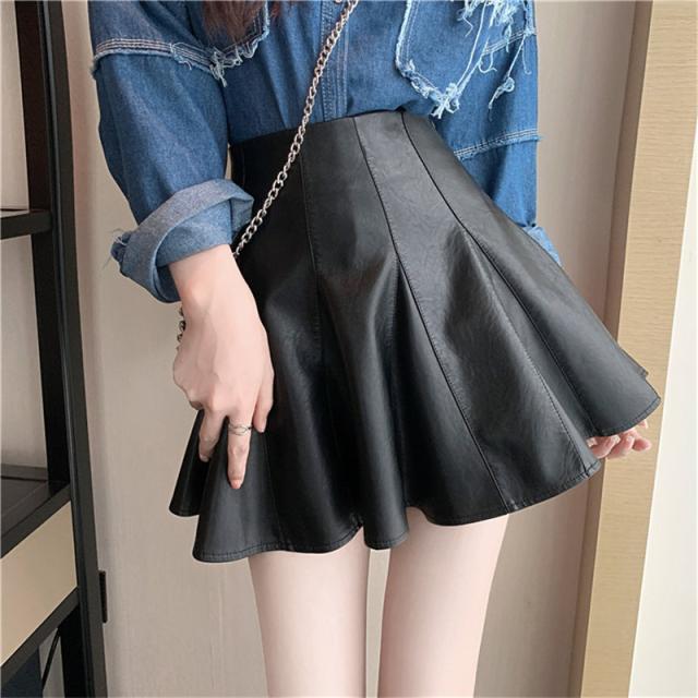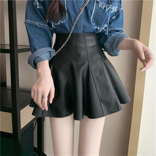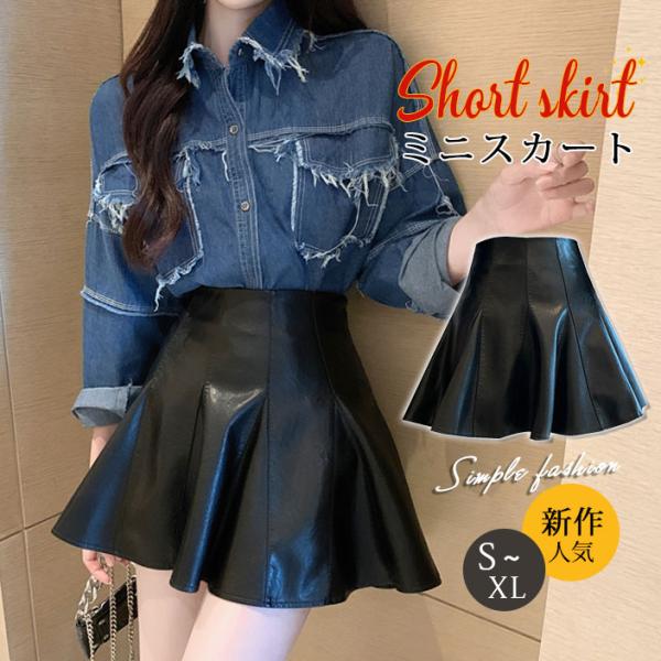 ミニスカート レザースカート PUスカート 無地 フレア ハイウエスト タイトスカート ショート丈 レディース 美脚 脚長 シンプル 新作 送料無料