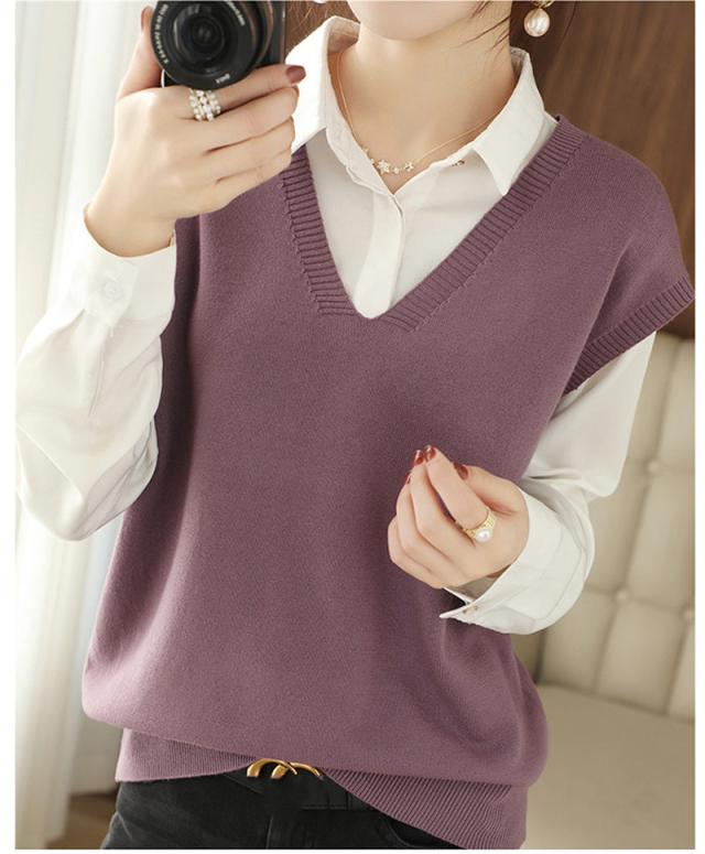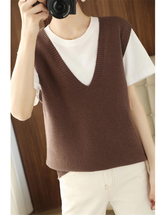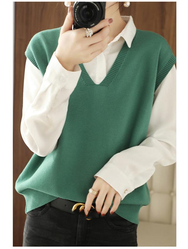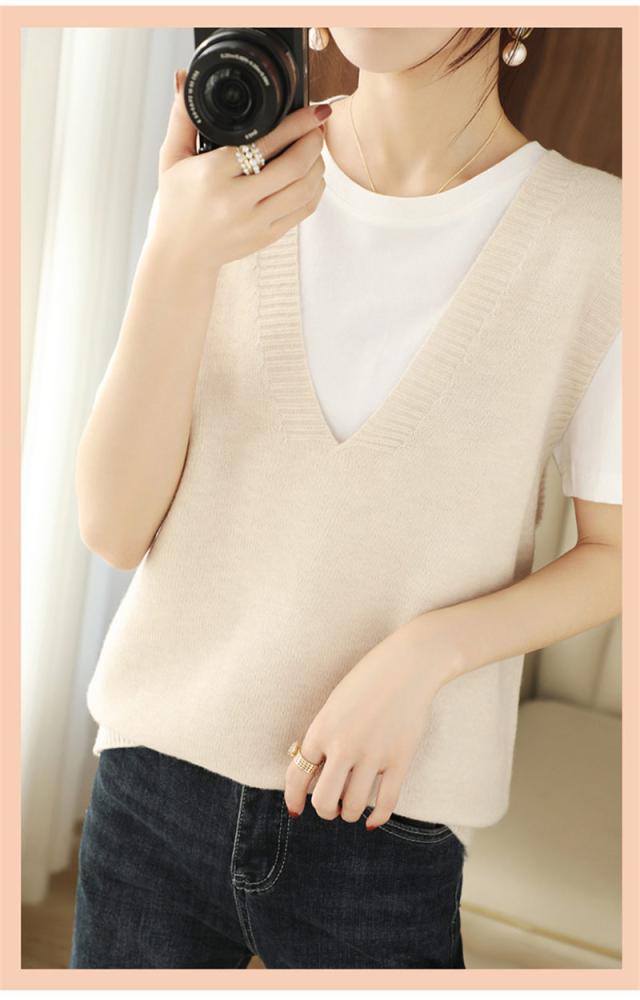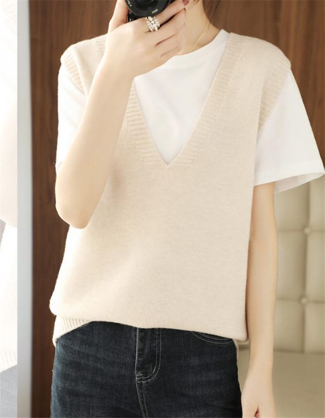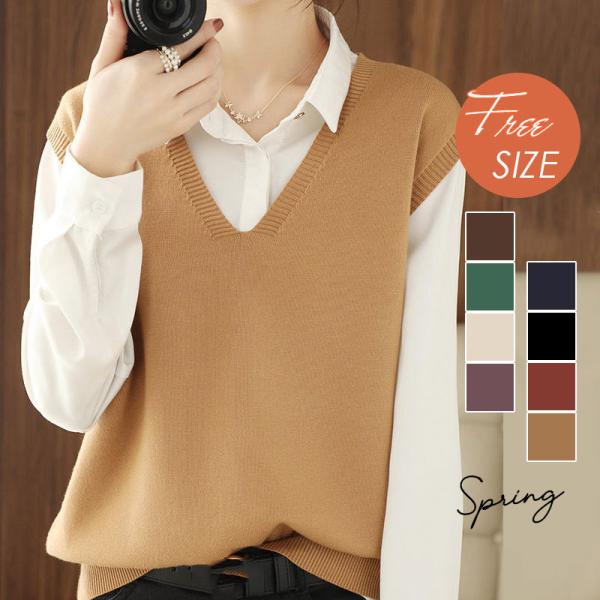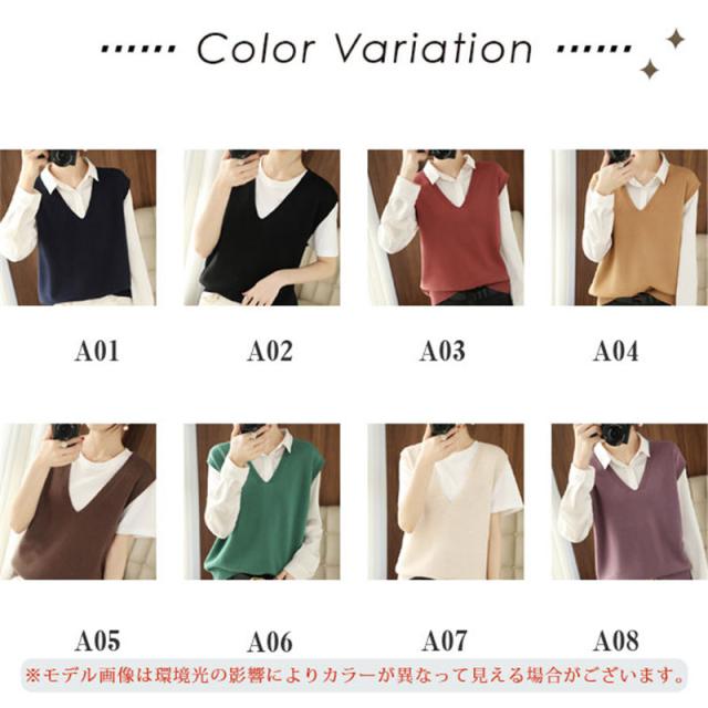 ニットベスト タンクトップ レディース Vネック 重ね着 ベスト 無地 カジュアル ジレー セーター スクールベスト おしゃれ 薄手 送料無料