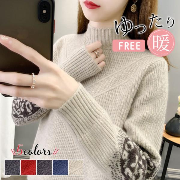 ニットトップス レディース 秋冬 もこもこ 長袖 ニットセーター ボトルネックセーター ショット丈 ニットソー ゆったりニット インナー おしゃれ