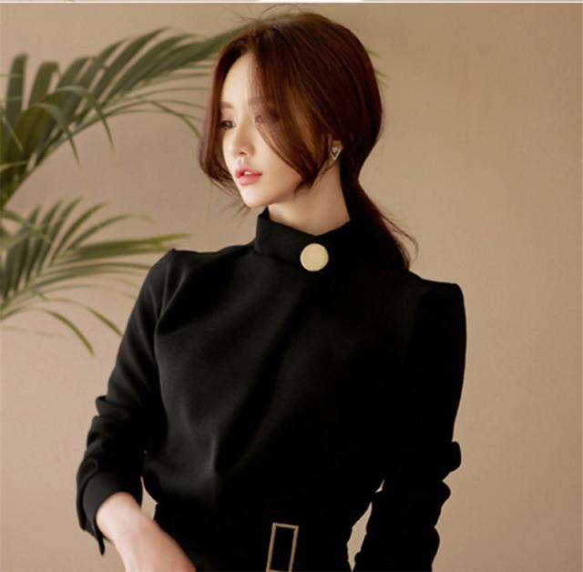 ワンピース 入学式 卒業式 卒園式 成人式 通勤 長袖 立ち襟 おしゃれ レディース ゴールドボタン パーティードレス 結婚式 二次会 披露宴 発表会
