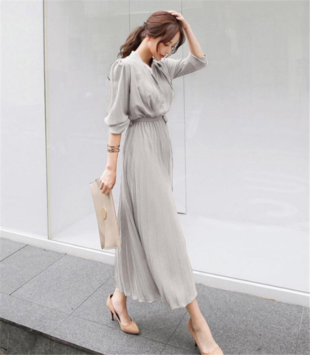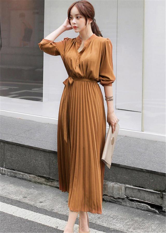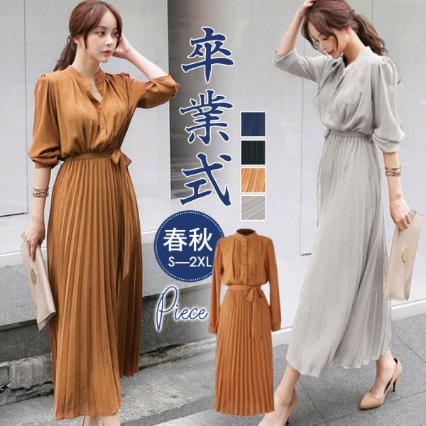 ワンピース 半袖 きれいめ ワンピース 夏 ロング 膝丈 ロングワンピース プリーツワンピース 大きめサイズ 入園式 大人 上品 OL オフィス