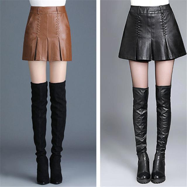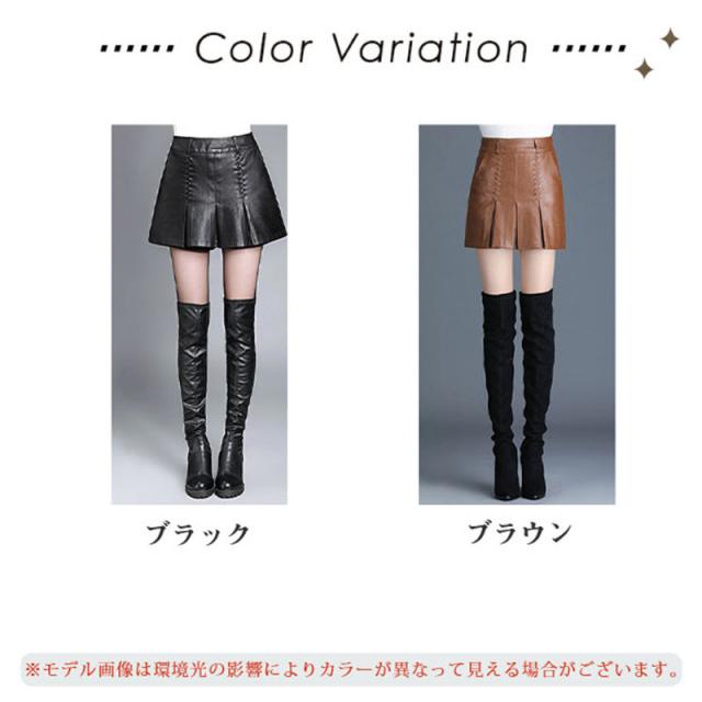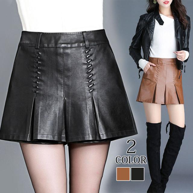ショートパンツ 秋冬 プリーツ レザーパンツ ハーフパンツ レディース ボトムス ショート丈 膝上 ウエストゴム カジュアル 冬物 無地 送料無料