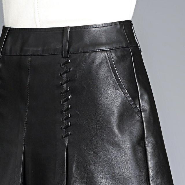 秋冬コーデのスパイスになるフェイクレザーの革パンツです。