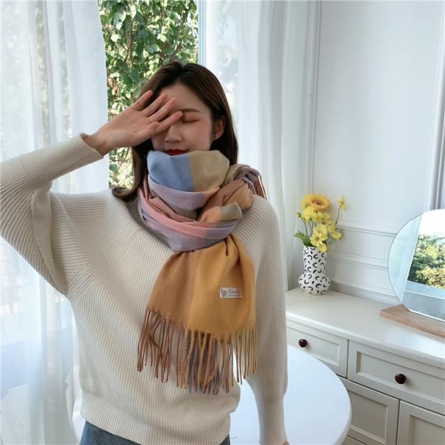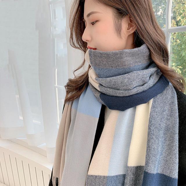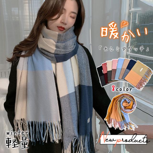 半額セール マフラー 大判ストール ロングマフラー 配色 カシミアタッチ レディース 新品 暖かい フリンジ 大判 ポレロ ストール マフラー 秋冬