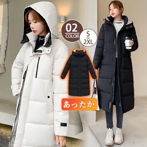 送料無料 中綿コート レディース ダウンジャケット ロングコート 暖かい 厚手 無地 フード付き 防風 防寒 アウター 軽量 カジュアル 可愛い 冬