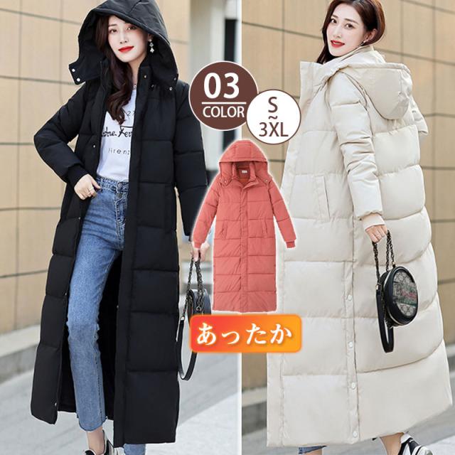 送料無料 中綿コート レディース ダウンジャケット ロングコート 暖かい 厚手 無地 フード付き 防風 防寒 アウター 軽量 カジュアル 可愛い 冬