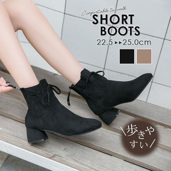 ショートブーツ レディース ブーツ ぺたんこ 太めヒール スエード 秋冬 送料無料 美脚 歩きやすい 疲れない 通勤 きれいめ おしゃれ カジュアル