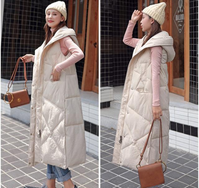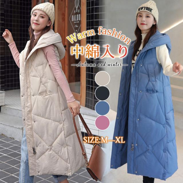ベスト レディース 中綿ベスト ロングベスト ダウンベスト ジャケット フード付き 前開き 暖かい 防寒 秋冬 アウター 軽量 着痩せ アウトドア