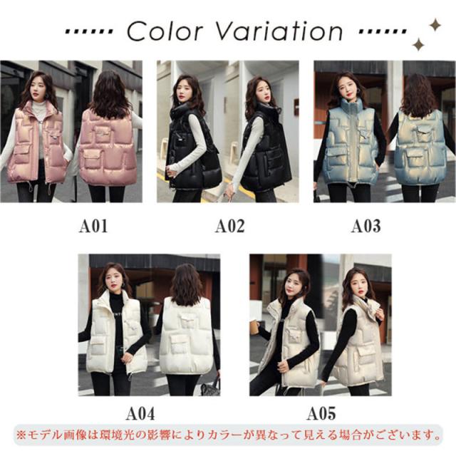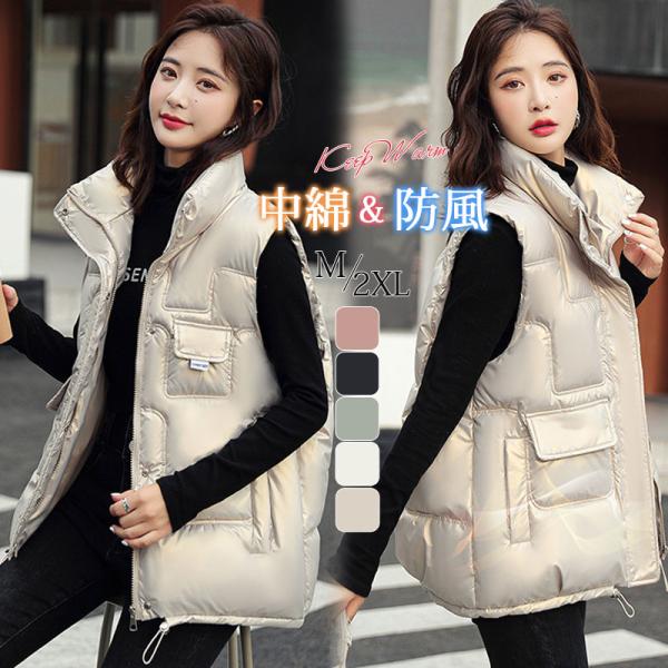 ベスト レディース 中綿 ダウンベスト 秋冬 ライトアウター きれいめ 防寒ベスト 無地 着痩せ カジュアル アウトドア シンプル 通勤 通学
