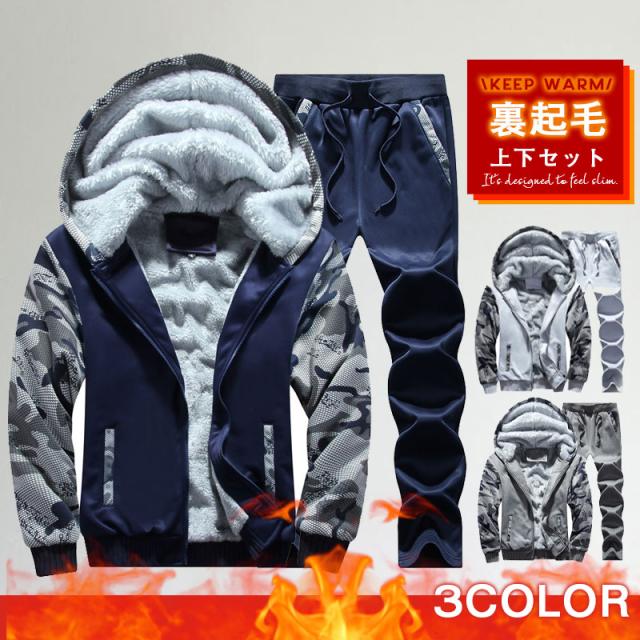 スウェット セットアップ メンズ 上下 迷彩柄 裏起毛 裏ボア ジャージ メンズ フード スウェット 上下セット 秋冬 防寒着 部屋着 大きいサイズ