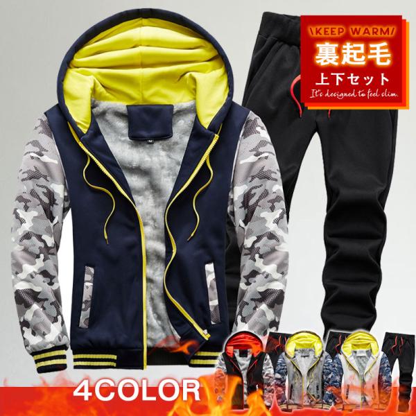 セットアップ メンズ 裏起毛 迷彩柄 フード ジャージ スウェット 上下セット スポーツウェア ジップアップ 厚手 秋冬 防寒着 部屋着 大きいサイズ