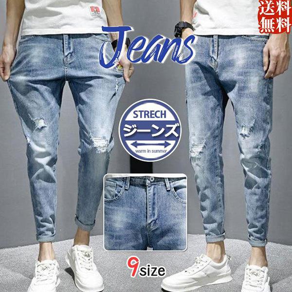 ジーンズ メンズ ダメージ加工 デニムパンツ スキニー ジーパン ズボン 通勤 大きいサイズ スリム カジュアル 薄手 大きいサイズ 楽ちん