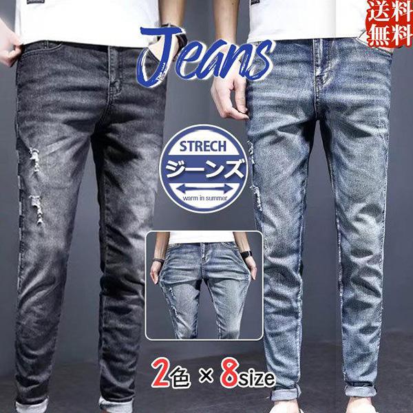 ジーンズ メンズ ダメージ加工 デニムパンツ スキニー ジーパン ズボン 通勤 大きいサイズ スリム カジュアル 薄手 大きいサイズ おしゃれ