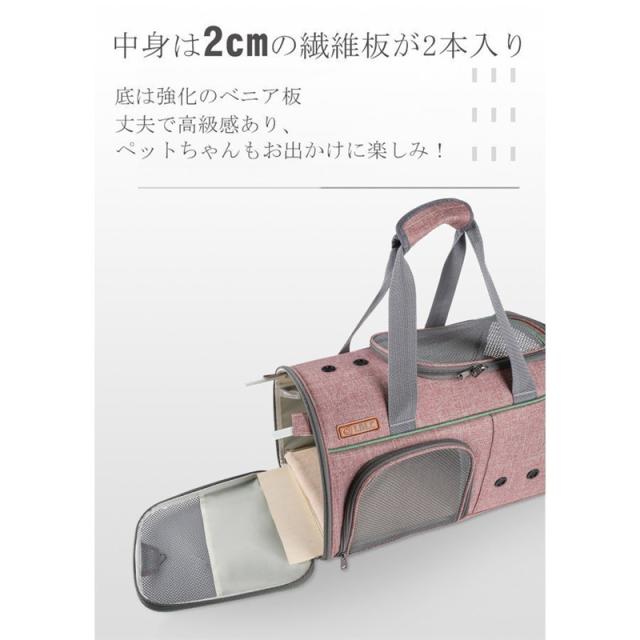 また飛び出し防止ベルト付きで、ペットを危険から守り、外に逃げ出して迷子になってしまう心配もなくて、安心してお出かけ出来るペットバッグです。