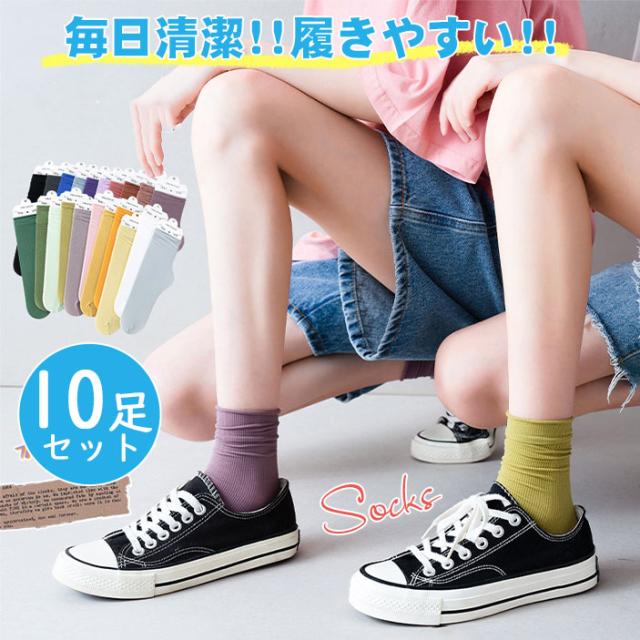 靴下 レディース ソックス 10足セット ショートソックス ミドル丈 くるぶし カラフル 通気性 おしゃれ かわいい 婦人 女性 送料無料 夏 秋 春