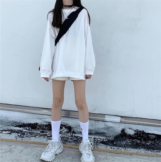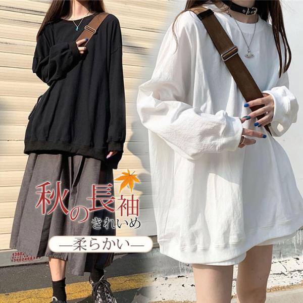 【一部即納】Tシャツ ゆるTシャツ ゆるトップス ドロップショルダー ロング シンプル 無地 長袖 ゆったり レディース トップス 体型カバー 隠れ 韓国風