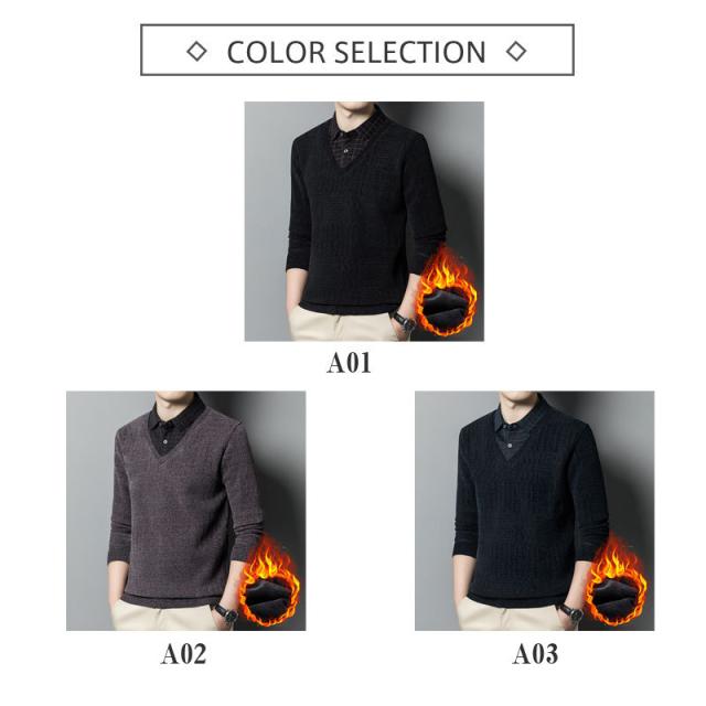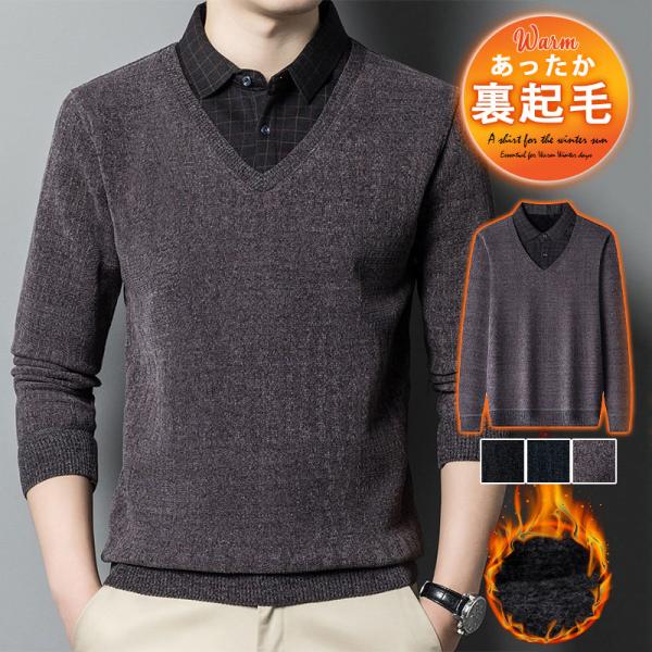 ポロシャツ メンズ 長袖 ゴルフウェア 厚手 フェイクレイヤード 裏起毛 折り襟 Tシャツ トップス ビジネス おしゃれ 通勤 スポーツ 紳士服