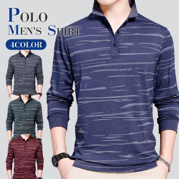 ポロシャツ メンズ トップス 長袖 Poloシャツ ボーダー柄 ゴルフウェア 無地 ポロ カットソー おしゃれ スポーツ 紳士服 敬老の日 送料無料