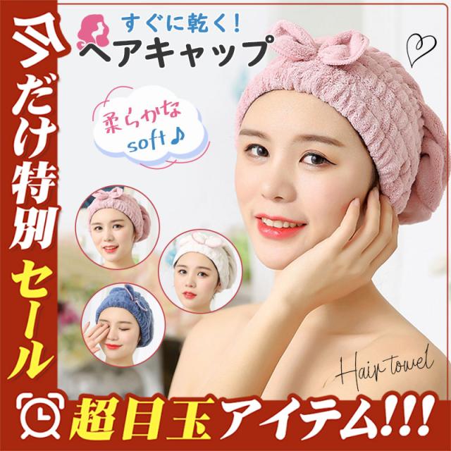 ヘアタオル 吸水 ヘアキャップ 速乾 タオルキャップ リボン 子ども ドライ時短 おしゃれ かわいい ふわふわ スイミング お風呂上がり 送料無料