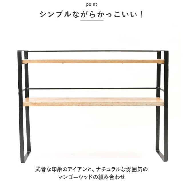 | 商品説明 | ・様々なシーンの魅せる収納に♪天然素材の木目が特徴的な、デスクラックが新登場。 【シンプルながらかっこいい!】 ・武骨な印象のアイアンと、ナチュラルな雰囲気のマンゴーウッドの組み合わせ。 【スリムサイズ】 ・キッチンカウンターや窓際、デスクの上にもすっきり置けるのがポイント。 【使い方いろいろ】 ・デスクの上の小物置き、キッチンに置くスパイスラック、観葉植物や雑貨を飾るなど、マルチに活躍◎耐荷重は3〜5kg 【背面バー付きで安心】 ・置いたものが落ちにくいつくり。 【移動もラクラク】 ・両手でサッと持ち上げOK!掃除や模様替えの際も快適。 |