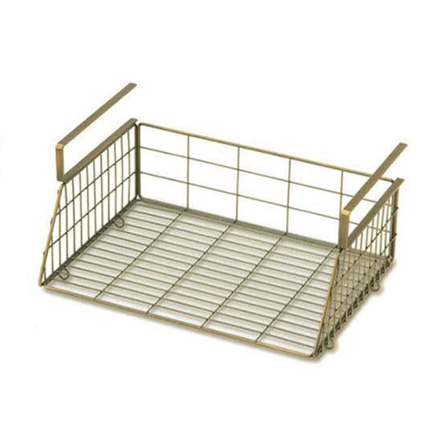 空いた空間を有効活用!省スペースでもラクラク収納できる、ハンギングバスケットが新登場。【小物収納に!】横幅36.5cm×奥行25cm×高さ17.5cmサイズ。耐荷重は約3kg。(※メーカーカタログ記載サイズです。)【デッドスペースを解消】棚板や天板に差し込むだけで収納棚に変身!板厚4.2cmまで対応。(※ビスは付属しておりません。)【連結OK】下部のリングフックを使って、横幅が同じサイズのバスケットを連結!クロスやマグなどを、取り出しやすく収納できて便利。【シンプルなデザイン】アンティーク感たっぷりのアイアン素材を使用。どんなテイストのお部屋にも馴染みやすい、生活感を抑えた仕上がり。【見せる壁面収納!】キッチンやリビング、玄関先で!小物をすっきり整理整頓♪