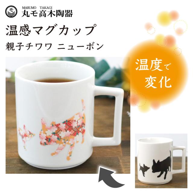 丸モ高木陶器 温感マグ 親子チワワ ニューボン 犬 犬柄 マグカップ マグ 犬モチーフ 陶器 イヌ 食器 温度で変化 犬グッズ 日本製