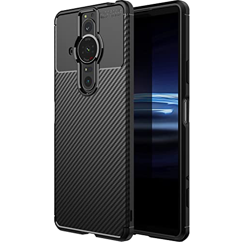 FINON Xperia PRO-I ケース カバー スマホケース カーボン デザイン (素材/TPU) 指紋防止 薄型 耐衝撃 簡易脱着 ソフトケース カラー: ブラック