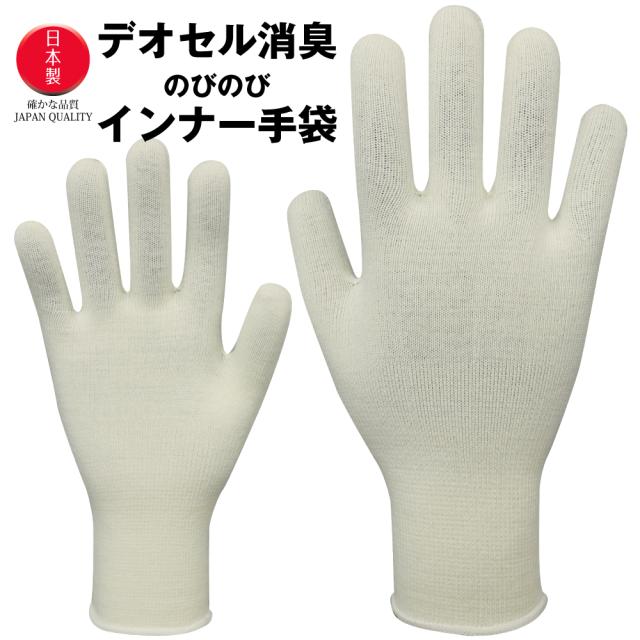 手袋 下履き インナー 消臭デオセル 日本製 のびのびインナーグローブ きなり