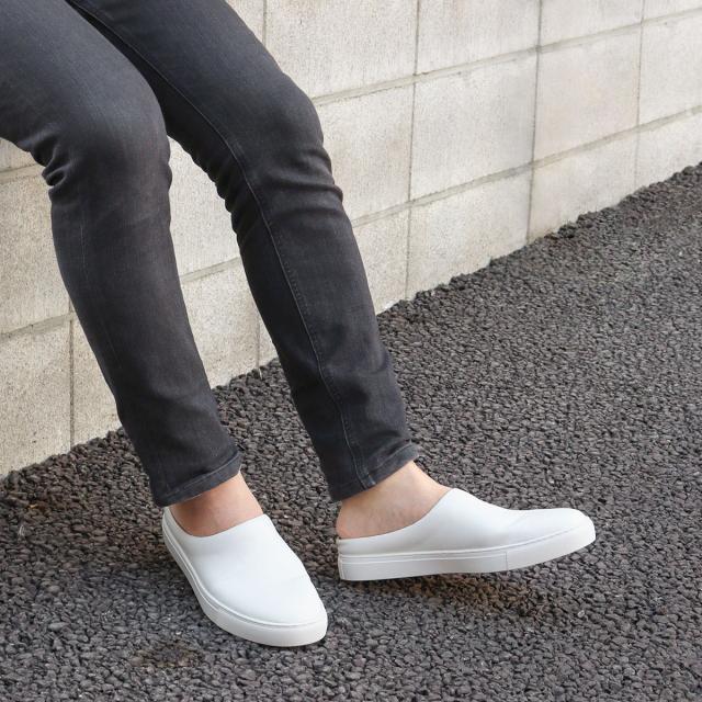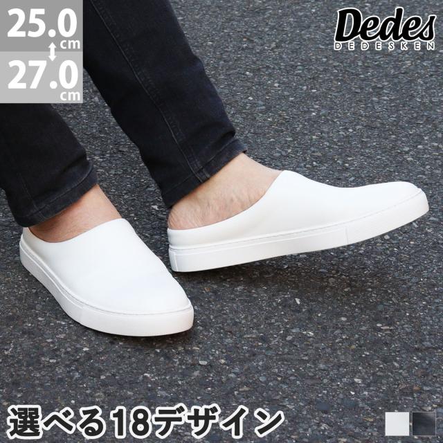 スリッポン メンズ かかとなし 通気性 合成皮革 歩きやすい 滑りにくい 着脱簡単 ブラック ホワイト No.6330-4 25cm-27cm デデス