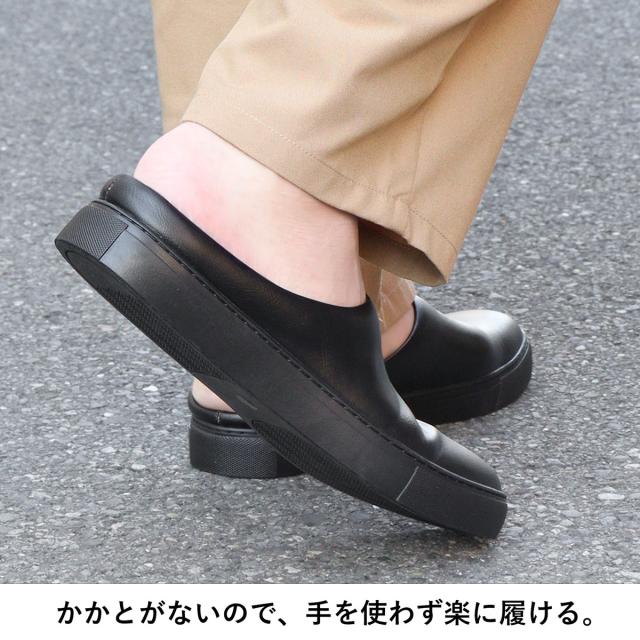 かかとが無いデザインなので、スリッパ感覚で手を使わずにスッと履けるのが魅力です。