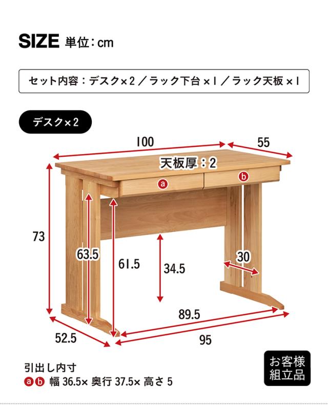 デスク:W100 x D55 x H73cm